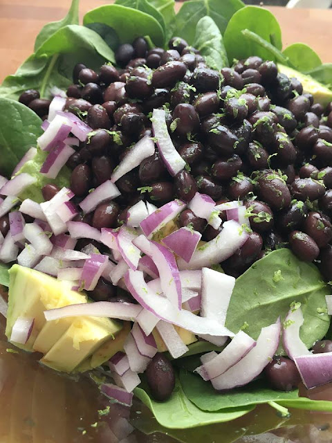 This maple lime dressing is a delicious, lime infused salad dressing. Try it on this salad with spinach, avocado, black beans, cilantro and red onion.